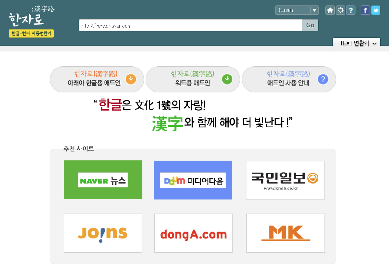 한자로(漢字路): 한글-한자 자동 변환기