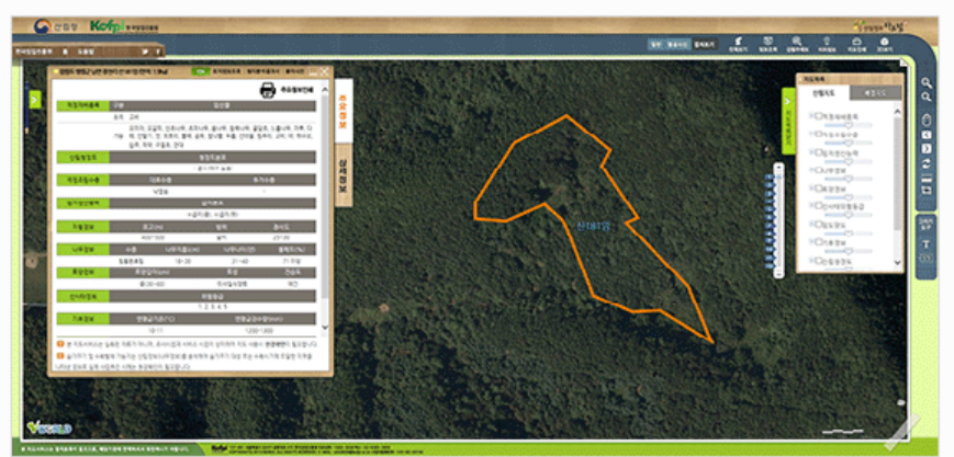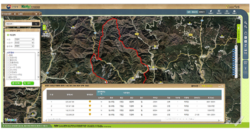 본인에게 맞는 토지를 찾는것도 가능합니다. 사용자의 목적에 맞는 땅을 찾아서 어디에 분포하는지 선택적으로 분석해줍니다. 나무, 토양, 임지생상능력과 같은것으로 필터링을 할 수 있습니다.