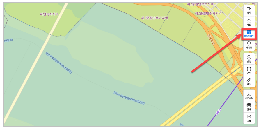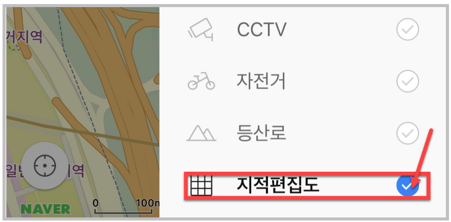 이후 지적편집도를 클릭하면 원하는 것으로 변경할 수 있습니다. 이는 아이폰이나 안드로이드 핸드폰 기종 상관없이 모두 가능한 기능입니다.