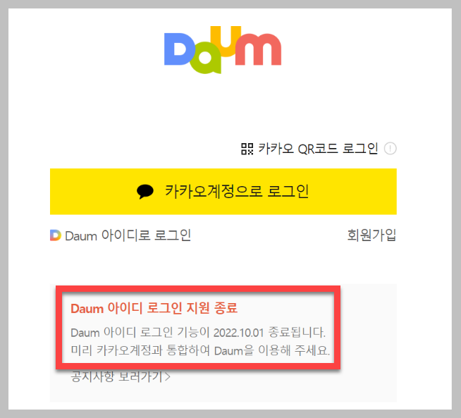 그뿐만아니라 이제는 모든 서비스가 카카오 아이디 아래에서 운영을 하려고 하는것 같습니다. 저는 카카오-Daum 연결회원이었습니다. 하지만 이제 이것의 로그인이 중지된다고 합니다. 이런 사용자들도 통합을 해야 합니다.