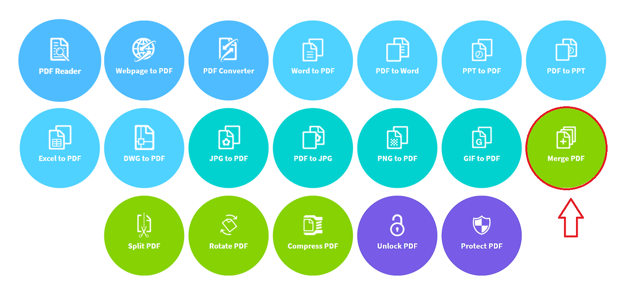 위 링크를 클릭하면 Alinpdf 홈페이지로 이동할 수 있습니다. 이곳에 들어가면 다양한 원형 아이콘을 볼 수 있습니다. 각 아이콘은 하나의 기능을 담당하고 있습니다.