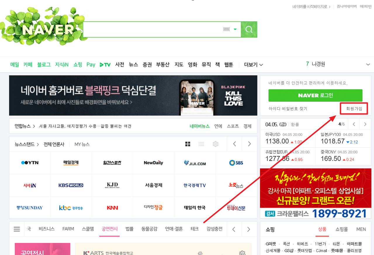 위 이미지를 보시면 '회원가입'에 화살표로 표시되어 있습니다. 그것을 클릭하면 네이버 이메일 주소를 만들 수 있습니다. 네이버는 자체 메신저인 라인과 연동하여 가입하는 것이 없으며, 오직 휴대전화 인증을 통해 가입해야 합니다. 다음과 마찬가지로 인증 없이는 가입이 불가능합니다.