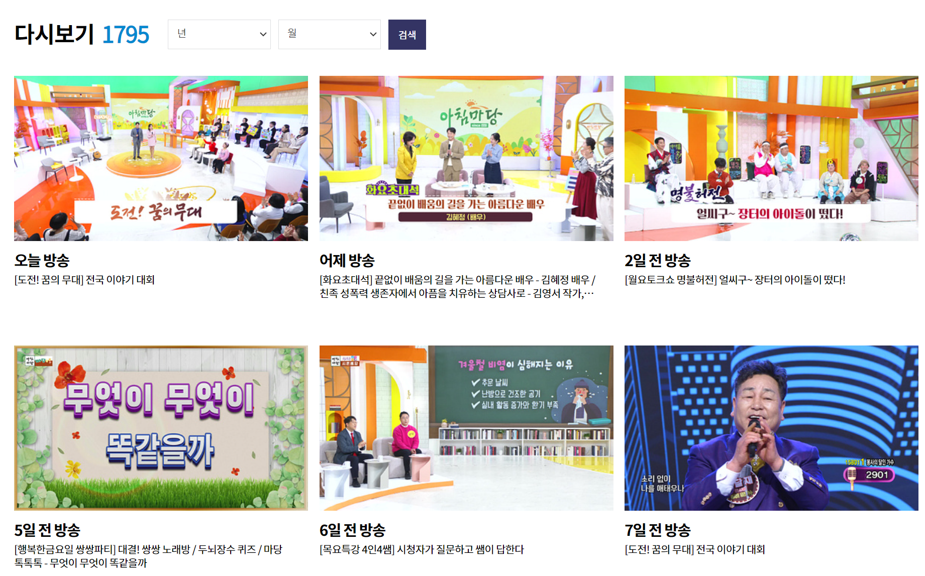 위 링크로 들어가면 재방송을 볼 수 있습니다. 노래를 정말 잘하는 사람의 경우 다시 볼 수 있기 때문에 이 페이지를 활용하면 좋을 것 같습니다. 개인적으로 도전꿈의 무대를 이 링크를 통해 자주 봅니다.