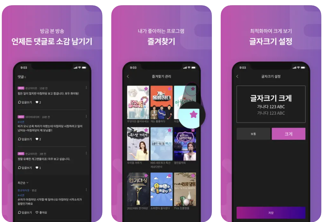 여러 가지 참여할수 있는 프로그램이 있지만, 들어가 보시면 알겠지만 사실상 아침마당을 위한 어플이라고 해도 과하지 않을정도로 아침마당의 비율이 매우 높습니다. 무엇이든 물어보세요도 있기는 합니다만, 비중은 작습니다.