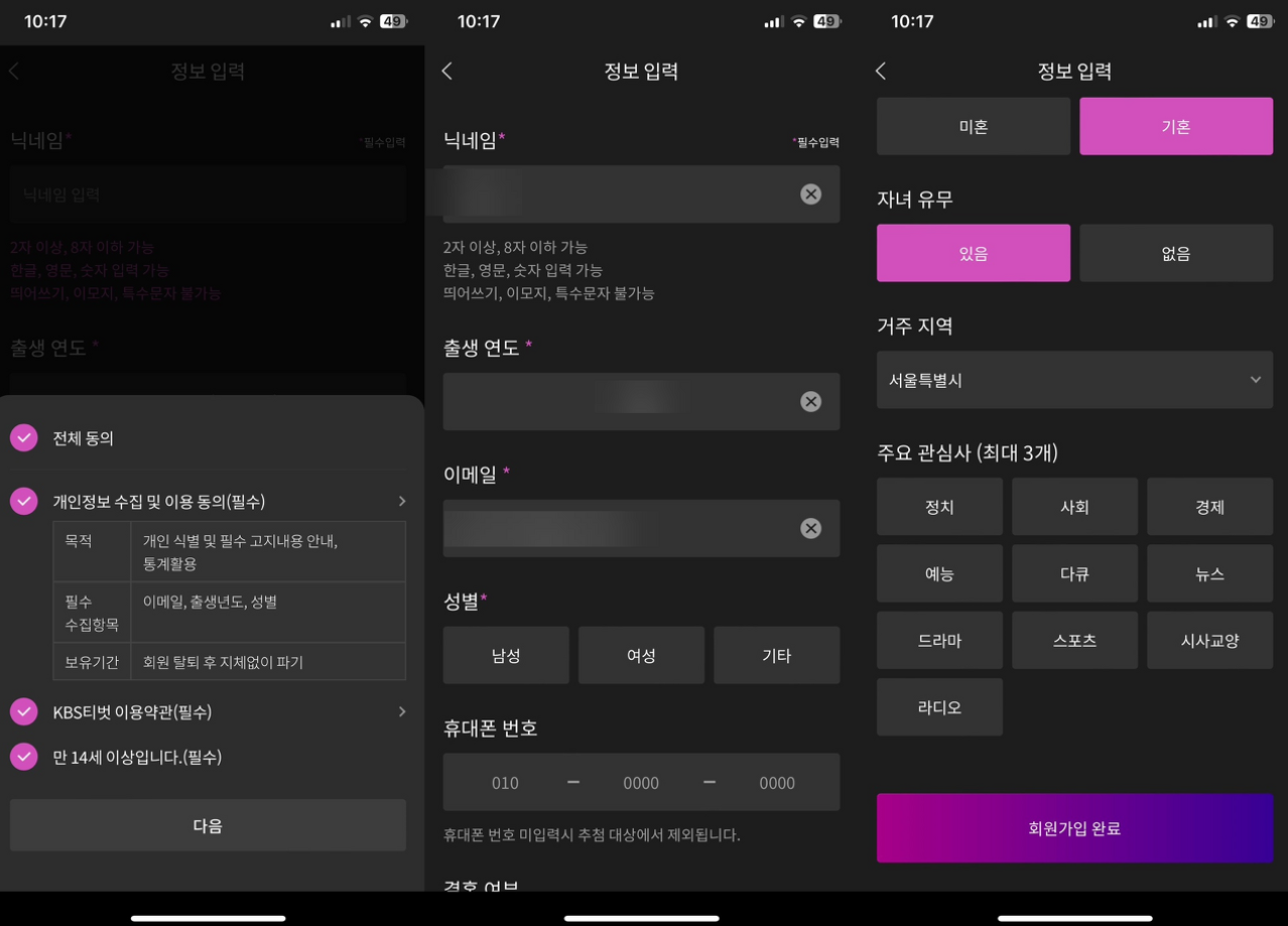 닉네임, 출생년도, 이메일, 성별 등의 정보를 입력하고, 거주지역을 입력하면 쉽게 가입할 수 있습니다. 가장 중요한 것은 '주소'와 '휴대폰 번호'입니다. 이것들을 정확하게 입력하지 않으면 당첨이 되어도 선물을 받을 수 없으니 유의해 주시길 바랍니다.