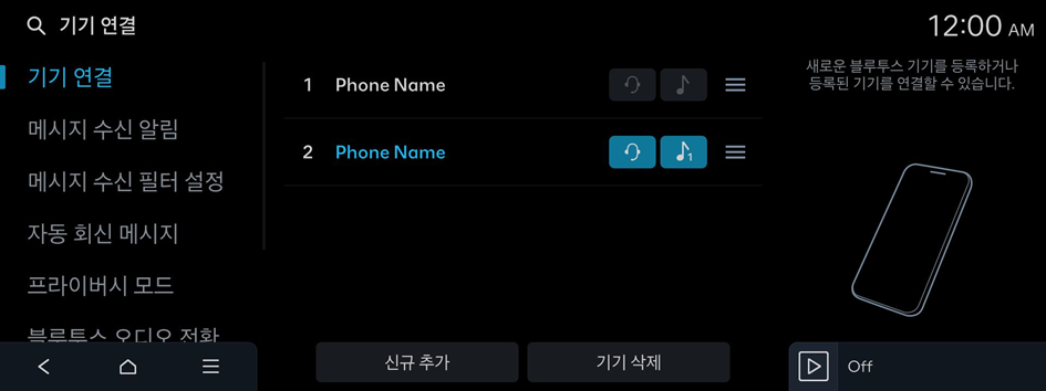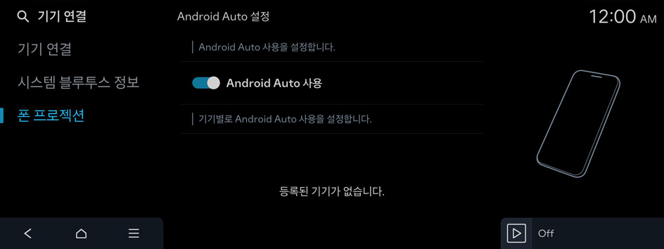 무선도 기본적인 설정은 유선과 같습니다. 차량의 설정에서 안드로이드 오토 기능을 켜고, ‘기기 연결’ 메뉴에서 새로운 기기를 추가하는 절차를 진행합니다.